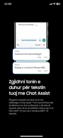 Inteligjenca artificiale përforcon pothuajse çdo përvojë në serinë Galaxy S24, nga mundësimi i komunikimit pa pengesa me përkthime inteligjente të tekstit dhe thirrjeve, deri te maksimizimi i lirisë krijuese me Motorin ProVisual të Galaxy, deri te vendosja e një standardi të ri kërkimi që do të ndryshojë mënyrën se si përdoruesit e Galaxy zbulojnë botën përreth tyre.