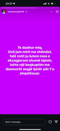 Në një InstaStory, Kasapi ka sqaruar se është mirë me shëndet dhe se lajmet janë ekzagjeruar.