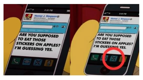 Rastësisht, fansat e serialit të animuar “The Simpsons ” kanë vënë në dukje një ngjashmëri të habitshme midis logos së re X dhe një aplikacioni të paraqitur në një episod të vitit 2012 të titulluar “Ned ‘n’ Edna’s Blend Agenda”. Në këtë episod humoristik, telefoni i Homer Simpson shfaq shkurtimisht një aplikacion që ka një ngjashmëri të jashtëzakonshme me logon e ridizajnuar të Twitter. Ndonëse nuk është një përputhje e saktë, ngjashmëria ka ndezur spekulime lozonjare dhe madje ka bërë që disa versione të fotoshopuara të qarkullojnë në internet, siç vunë në dukje kontrolluesit e fakteve.