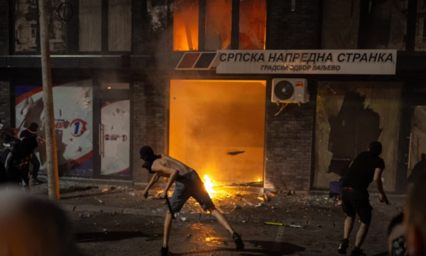 Përleshjet më të dhunshme janë regjistruar në Valljevë, në perëndim të Serbisë, pasi zyrat e Partisë Përparimtare të Serbisë – parti e presidentit, Aleksandar Vuçiq – janë përfshirë nga flakët.